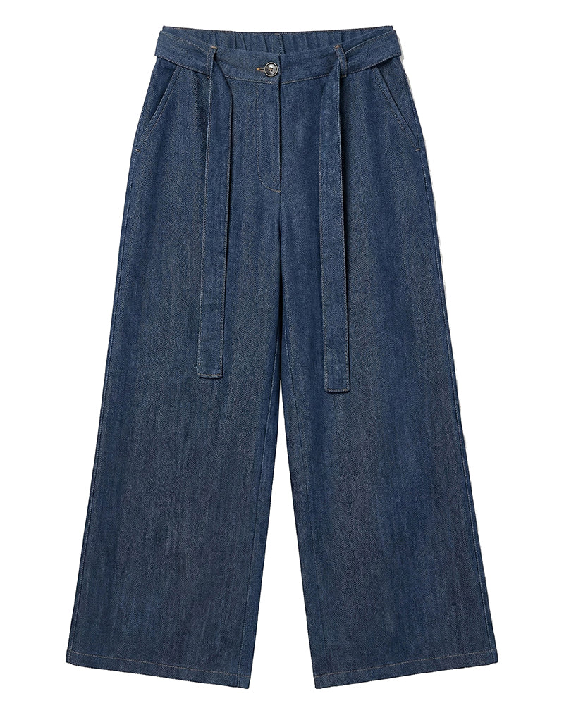 Pantalone ampio con cinturino elasticato in tessuto chambry.