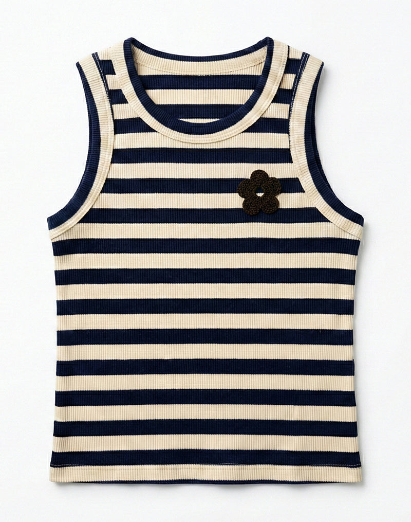 Canotta in costina rigata con applicazione fiore in punto spugna.