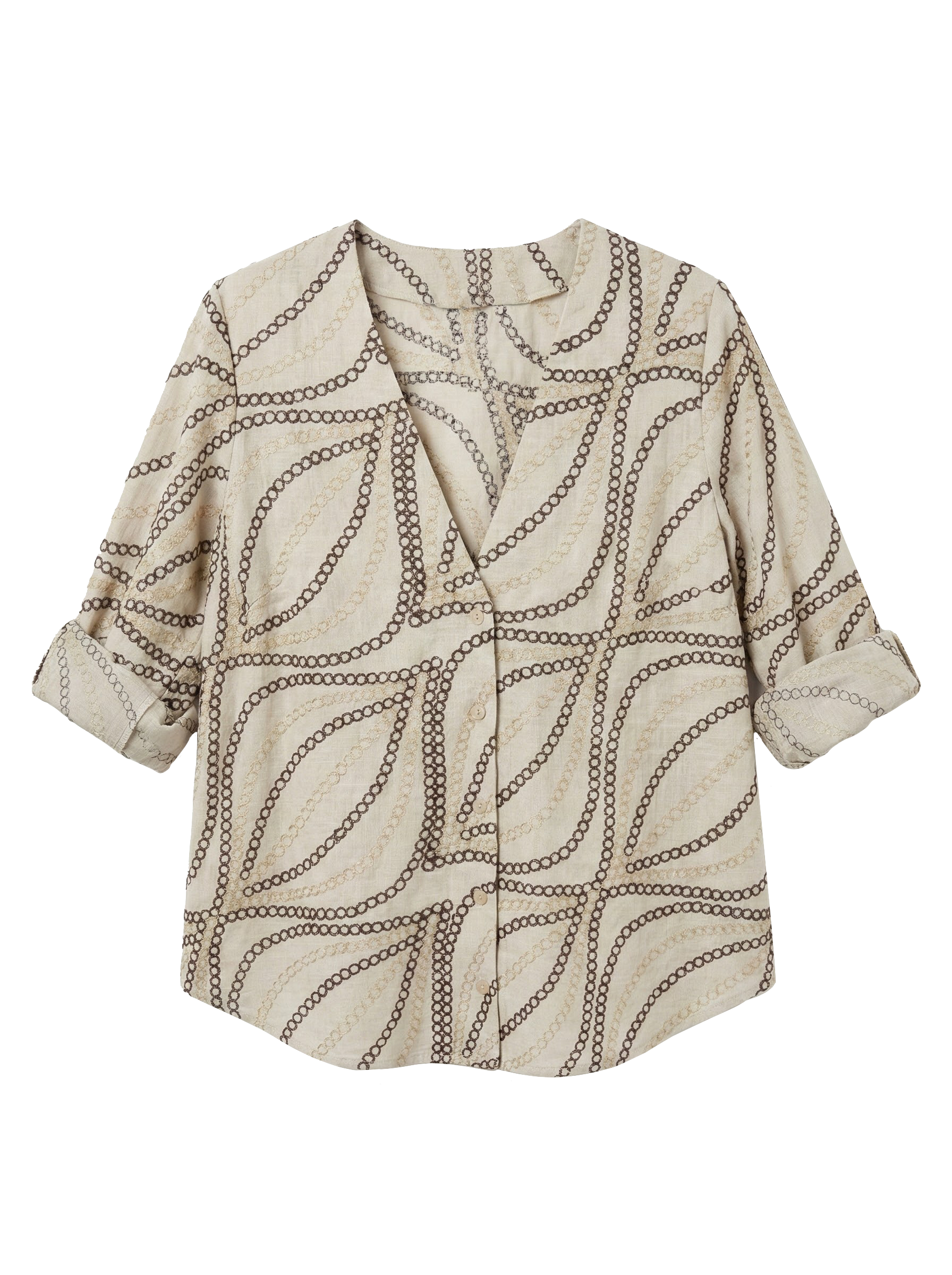 Blusa scollo a “V” con ricami motivi astratti.