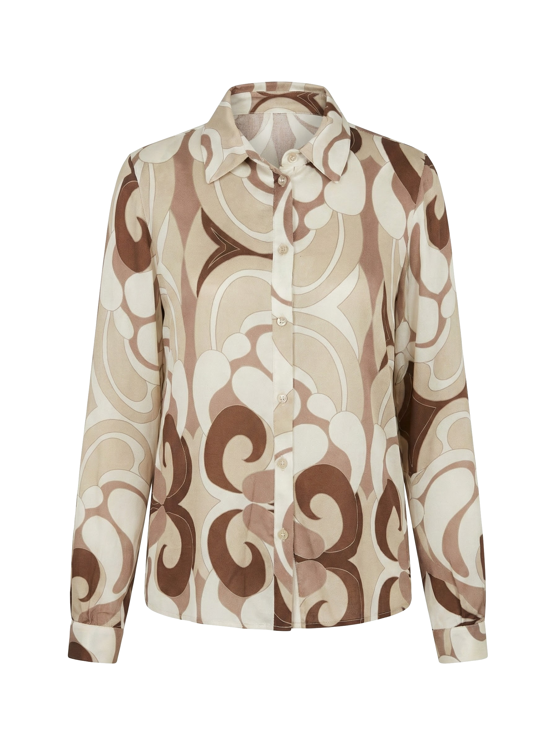 Camicia in viscosa stampata fantasia astratta sui toni del beige.