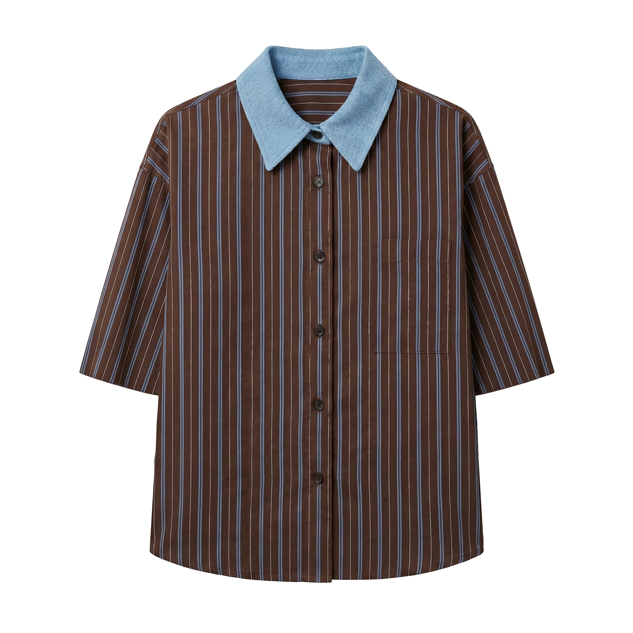 Camicia in cotone rigato con inerti in denim.